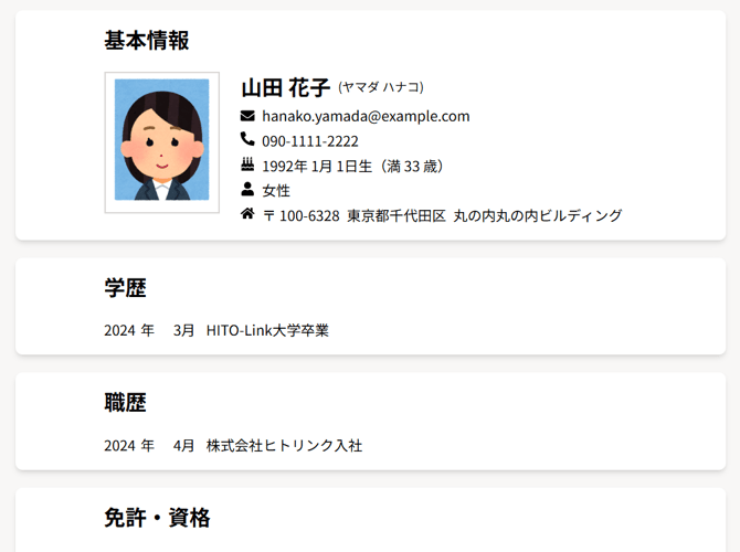 - この機能を利用して候補者が履歴書情報を登録した場合、それまでに登録されている履歴書情報がすべて上書きされます。