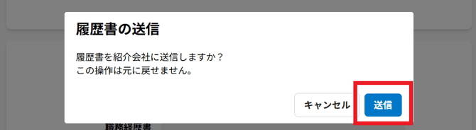4.「履歴書を送信する」ポップアップが表示されるので、〔送信〕をクリックします。