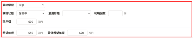 候補者の最終学歴や、希望年収など、候補者に関わる情報を保存することができます。