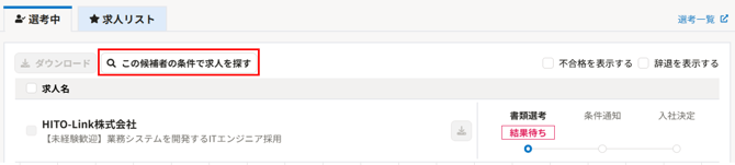 - 求人名をクリックすると、対象の選考詳細画面がひらきます