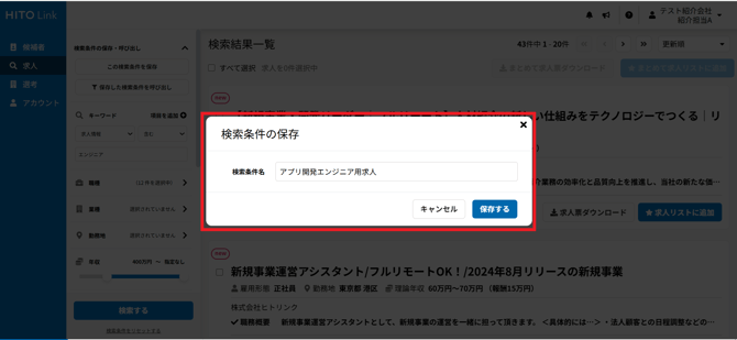 3.任意の検索条件名称を入力し、〔保存する〕をクリックします。