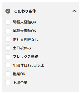 チェックした条件がこだわり条件として設定されている求人を検索します。