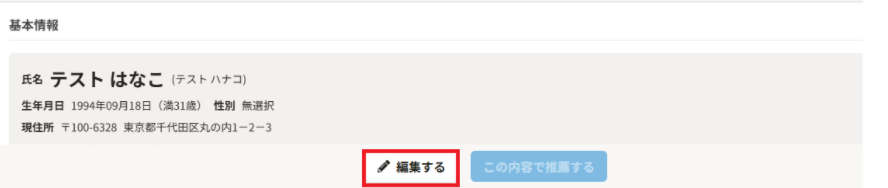 候補者詳細>推薦したい求人の〔推薦する〕をクリック>〔編集する〕をクリックして、推薦文などの内容を編集することも可能です。