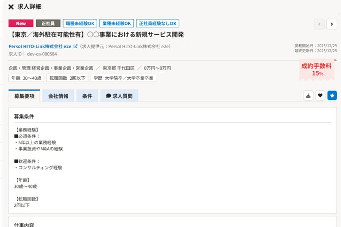 現在の求人一覧は情報が少なく、詳細画面を開かないと求人の比較ができませんでした。今回のリリースで、一覧上にタグを設置したり、詳細も表示するなど他の求人と比較しやすく、推薦したい求人を見つけやすくしました!