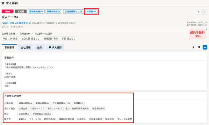 1.求人詳細画面に求人の特徴が分かるよう、項目を追加します!