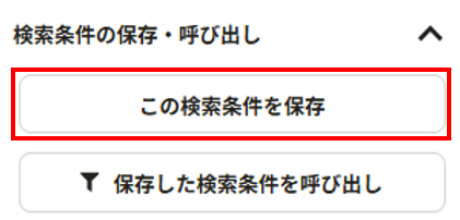 🔍マークから応募者専用の求人を検索中に、検索条件を追加変更して「この検索条件を保存」しておくと、次回以降🔍マークで応募者専用の求人を再度検索したときに、検索条件を保持しておくことができます。