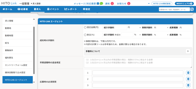 求人ごとに成約手数料を設定。HITO-Link エージェント向けにこだわり条件などを設定できるようになります! - マイページ/採用タスク