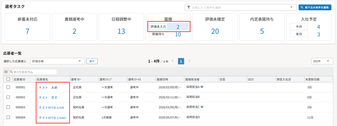 →対象者(当日・過去日の面接で、評価入力が済んでいない)のみ表示されるよう修正予定です。