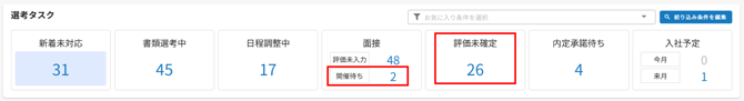 書類選考の評価が評価入力済になると評価未確定のみに入ります