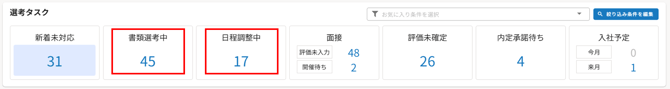 「書類選考中」と「日程調整中」は新着未対応とダブルカウントされる仕様です。