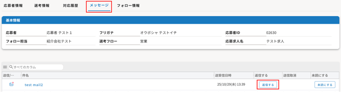 応募者からのメールに返信する
