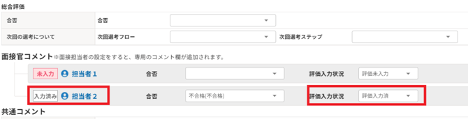 ※赤枠の担当者に「面接官権限」が付与されている場合に送信されます |