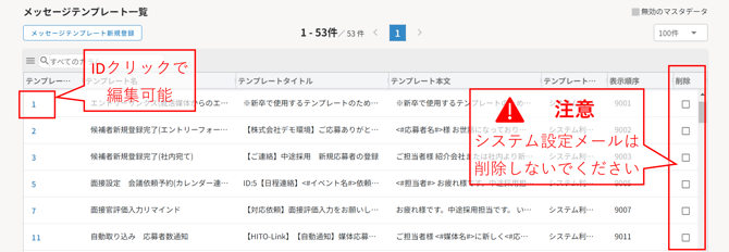 テンプレートID:65 (2桁のID)までがシステム設定のテンプレートです。