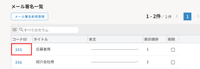 1.メール署名一覧から変更したいコードIDをクリックします。