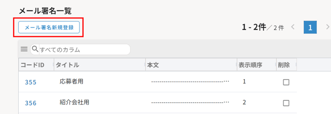 1.メール署名一覧から〔メール署名新規登録〕をクリックします。