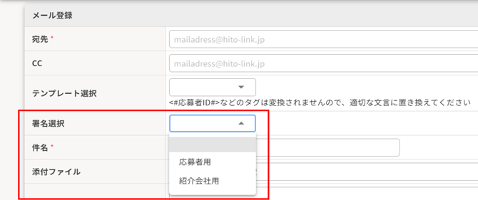 【注意】メール署名は、問い合せ登録画面からのみ利用できます。