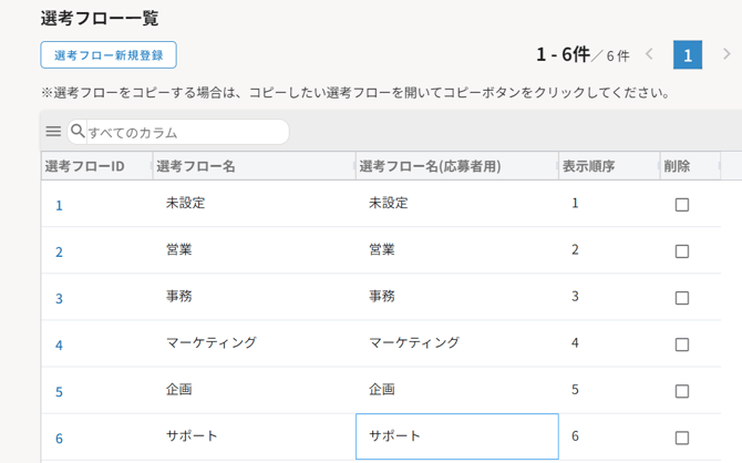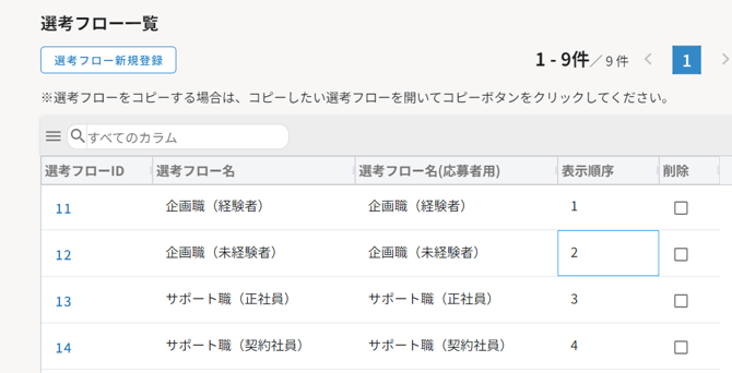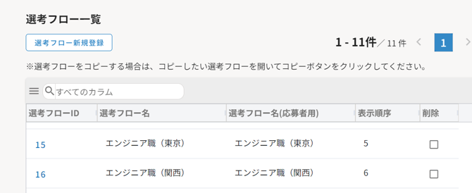 詳細はこちら:選考フローを登録・編集・削除・コピーする