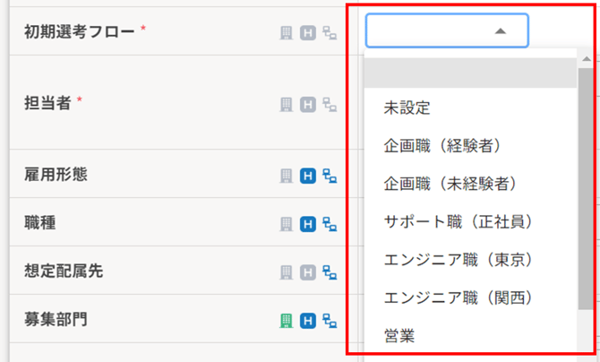 たとえば、募集職種が「営業職」でも、採用地域(関東/関西)で担当者が異なり採用分析も地域ごとに行う場合は「営業職(関東)」「営業職(関西)」と選考フローを分けると進捗確認がしやすくなります。