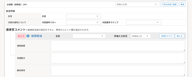 評価項目に適性試験結果を入力すると、次選考の面接官も情報を閲覧できます。以降の面接実施時に、参考情報として閲覧したい場合は、評価項目の設定がおすすめです。