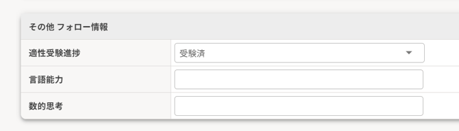 適性試験の実施タイミングが定まっていない、あるいは実施有無が応募者によって異なる場合は、適性試験を選考ステップに組み込まず、カスタム管理項目(その他 フォロー情報)で管理します。詳細はこちら:その他フォロー情報を活用