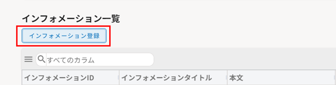 2.インフォメーション一覧で〔インフォメーション新規登録〕をクリックします。
