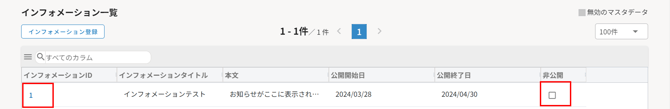 2.インフォメーションIDをクリックすると、登録内容の詳細が確認できます。