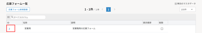 1.応募フォーム一覧から変更したいフォームのIDをクリックします。