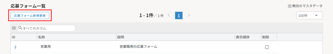 応募フォーム一覧から〔応募フォーム新規登録〕をクリックします。