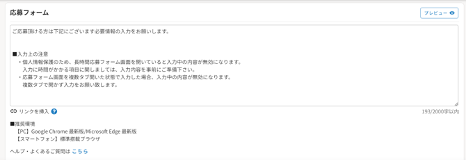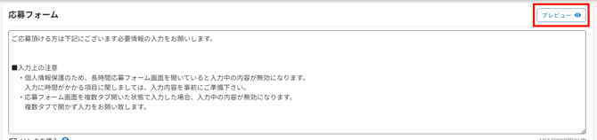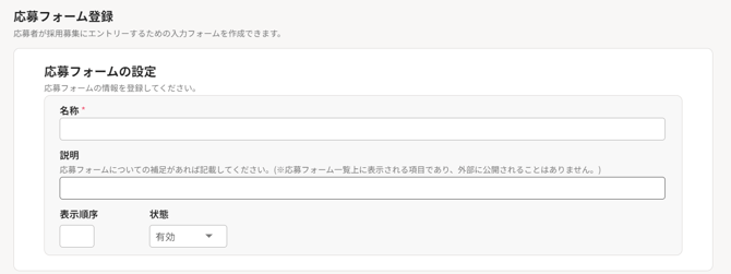 | 説明 | 設定>応募フォーム>応募フォーム一覧で表示される説明 |