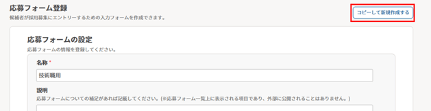 応募フォーム詳細画面右上の〔コピーして新規作成する〕をクリックします。