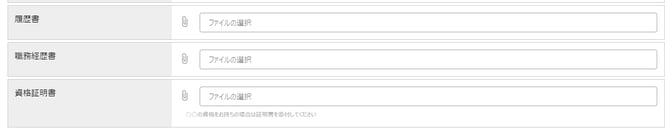 複数のアップロード枠を設定できます ・ファイル形式:PDFファイル(.pdf)、Wordファイル(.doc .docx)、Excelファイル(.xls .xlsx)、画像ファイル(.jpeg .jpg .png .gif)
