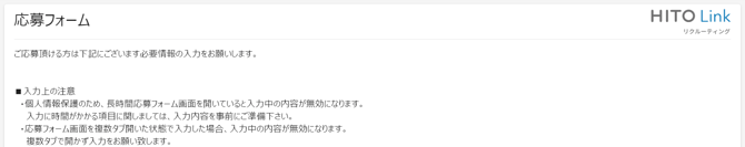 HITO-Linkで提供しているエントリーフォーム上で、応募時に入力してもらうページのことを指します。