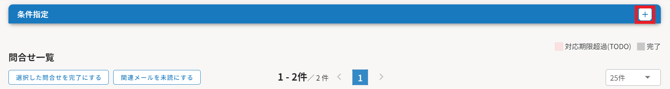 - 画面初期表示時は、未完了の問合せを表示しています。完了した問合せを確認したい場合は、【ステータスが「完了」の問合せも検索結果に含める】にチェックを入れてから検索してください。