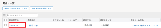 1.問合せ一覧で該当の対応履歴 ID をクリックします。