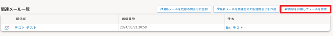 2.関連メール一覧でメール内容を確認し、「内容を引用してメールを作成」をクリック。
