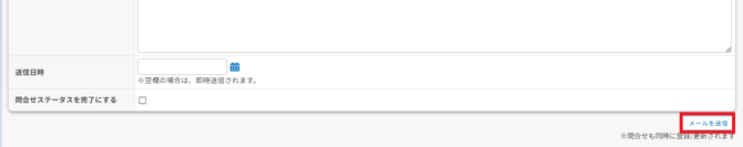 | メールフォームを閉じる | メールを送信しない場合は押下して画面を閉じてください。 |