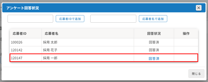 ・応募者を表示する>回答状況は