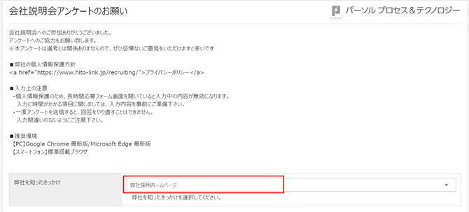 - 紹介会社経由の応募者には紹介会社担当者にアンケートが送信されます。