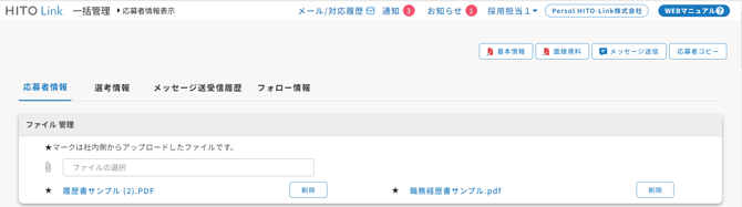 ・アップロードされたファイルは、応募者のファイル管理に追加されます。