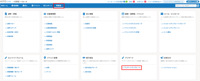 1.応募者に回答してもらいたい項目を設定したアンケートテンプレートを作成します(任意)