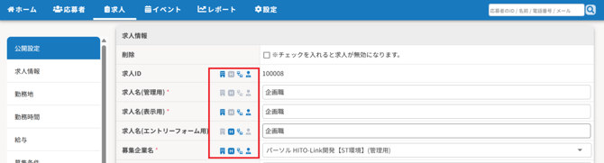 各項目がどこへ公開されるかについて、項目名の横に各アイコンがついていますのでご確認ください。![]()