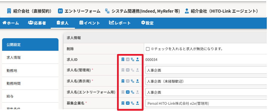 HITO-Link内で表示する求人名を入力します
