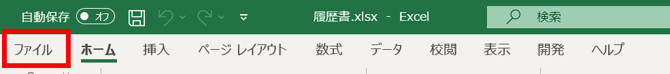 1.対象ファイルをひらき、〔ファイル〕をクリック