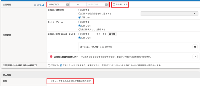 非公開にしても媒体連携用の求人としては紐づきます。