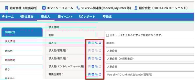 | 求人名(管理用) | ○ | HITO-Link内で表示する求人名を入力します |