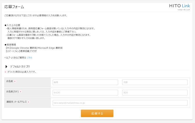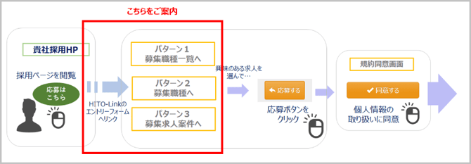 貴社採用HPへのHITO-Linkエントリーフォームのリンク設置作業は、貴社にて行っていただきますようお願い致します。