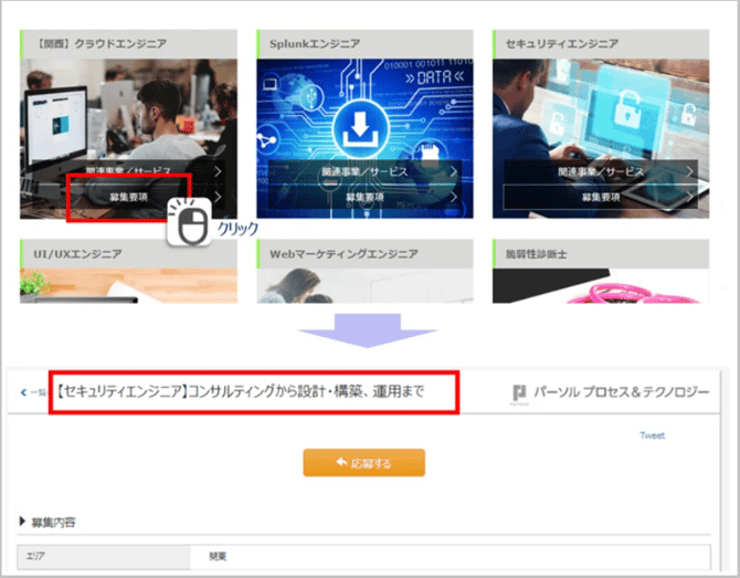 - 採用HPで各募集求人を整理しており、募集要項詳細をリンク先で確認してほしい場合
