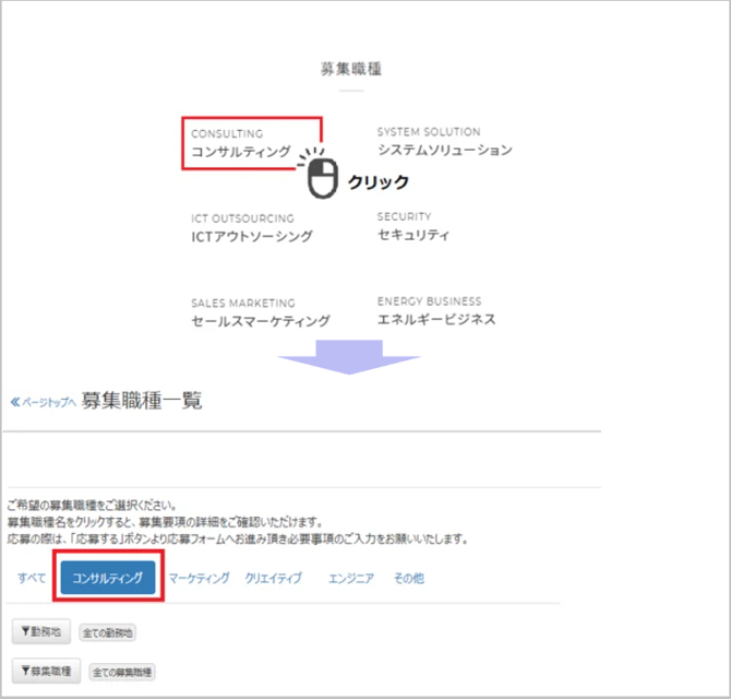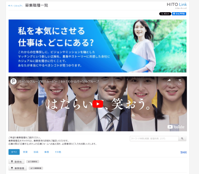 - 自社採用HPでは職種一覧をまとめて記載していない場合