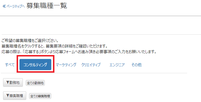 パターン2:募集職種一覧ページのタブ別にリンクを貼る