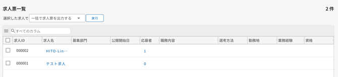 - 求人票一覧の表示項目